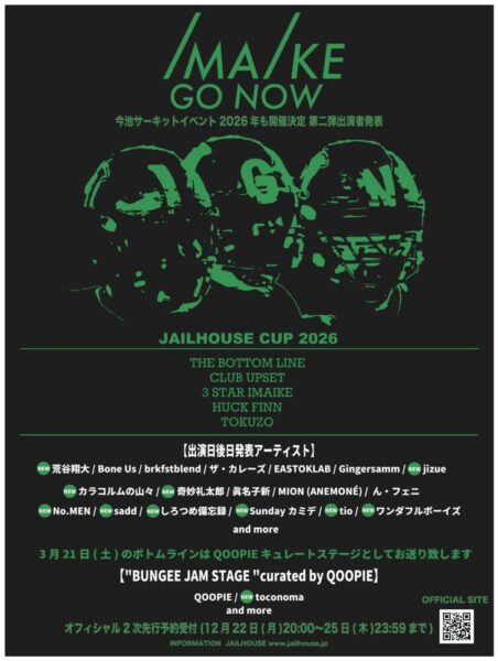 2026.3.20(fri/hol)-21(sat)@ BOTTOM LINE / TOKUZO / CLUB UPSET / HUCK FINN / 3STAR IMAIKE (愛知)